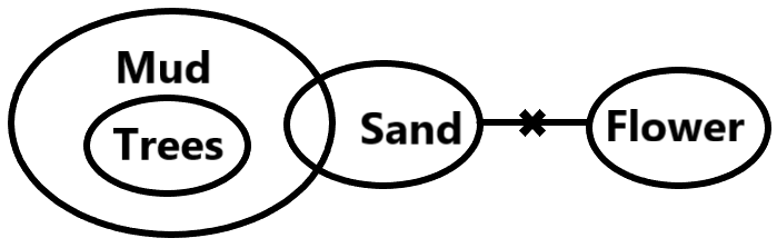Conclusion (II): Some sand are trees. (False, we cannot conclude that the overlap between Sand and trees.)
