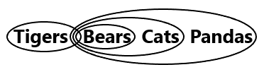 II. Some pandas are bears. (True, all bears are pandas shown in diagram, so that means some pandas are bears is definitely true).
