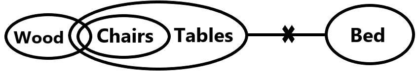 (II): All chairs are beds. (False, Since No table is a bed then All chairs are beds is not possible.)