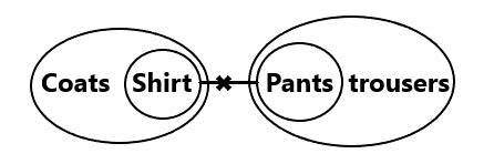 I. No coat is a trouser. (False, there is no direct relationship established between Coats and Trousers).