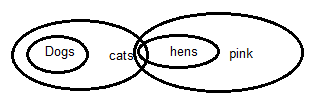 Given - Statements: All dogs are cats. Some cats are hens. All hens are pink.