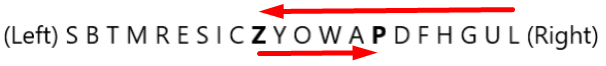(Left) S B T M R E S I C Z Y O W A P D F H G U L (Right)