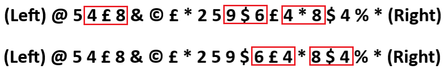 (Left) @ 5 4 £ 8 & © £ * 2 5 9 $ 6 £ 4 * 8 $ 4 % * (Right)