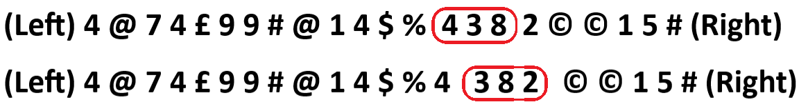 (Left) 7 @ > 5 # ? \ + * 2 > ? > $ 4 % % $ 7 4 2 (Right)