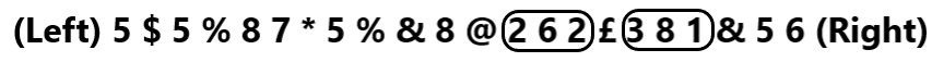 (Left) 5 $ 5 % 8 7 * 5 % & 8 @ 2 6 2 £ 3 8 1 & 5 6 (Right)