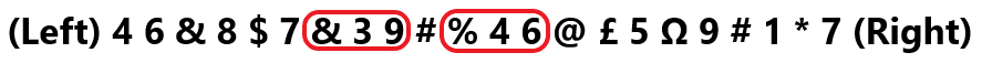 (Left) 9 8 3 1 4 6 # 6 4 6 * % & $ @ 9 1 % 1 % # £ (Right)