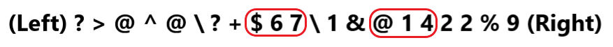 (Left) 7 & 9 ^ # 1 * 5 ≺ 2 6 ≡ 4 ∆ 3 $ @ 8 (Right)