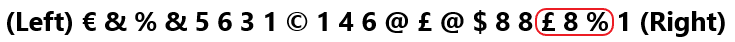(Left) 9 8 3 1 4 6 # 6 4 6 * % & $ @ 9 1 % 1 % # £ (Right)