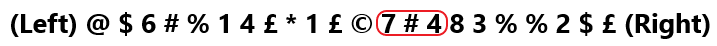 (Left) @ $ 6 # % 1 4 £ * 1 £ © 7 # 4 8 3 % % 2 $ £ (Right)
