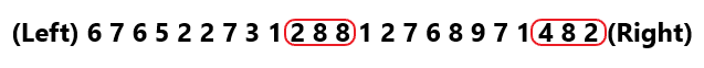 (Left) 4 7 1 9 0 5 3 8 2 6 1 4 7 9 2 0 3 6 8 5 1 2 7 3 4 (Right)