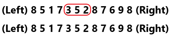 (Left) 8 5 1 7 3 5 2 8 7 6 9 8 (Right)