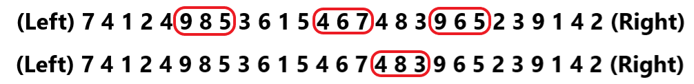 (Left) 4 7 1 9 0 5 3 8 2 6 1 4 7 9 2 0 3 6 8 5 1 2 7 3 4 (Right)