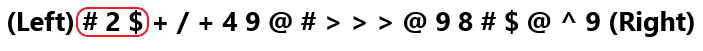 (Left) # 2 $ + / + 4 9 @ # > > > @ 9 8 # $ @ ^ 9 (Right)