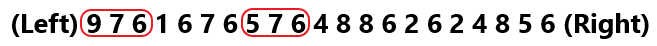 (Left) 9 7 6 1 6 7 6 5 7 6 4 8 8 6 2 6 2 4 8 5 6 (Right)