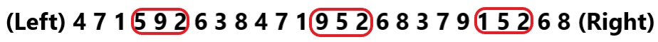 (Left) 4 7 1 9 0 5 3 8 2 6 1 4 7 9 2 0 3 6 8 5 1 2 7 3 4 (Right)