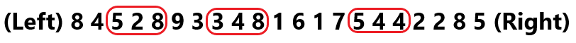 (Left) 8 4 5 2 8 9 3 3 4 8 1 6 1 7 5 4 4 2 2 8 5 (Right)