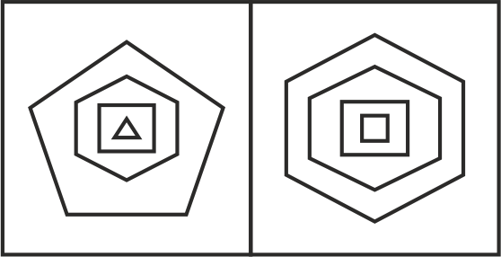 Select the alternative which represents three out of the five alternative figures which when fitted into each other would form a complete square.