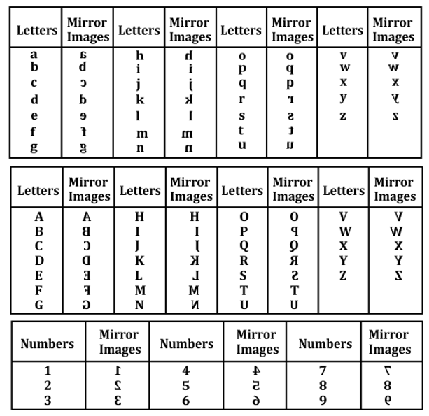 When the mirror is placed to the right side of the alphabets, then:
