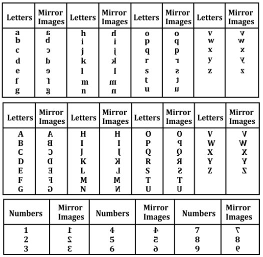 The mirror image of the given letter/ number as shown below.
