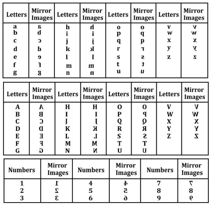 When the mirror is placed to the right side of the alphabets, then: