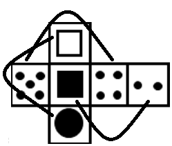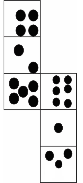 When the sheet of paper given in the following figure is folded to form a cube, how many dots will be there on the side opposite to the face bearing five dots?