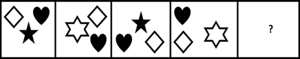 Logic: Rhombus and heart shapes are moving clockwise, Star shape changes alternately.
