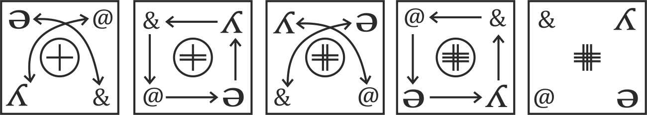 For the element at the center of each box, the number of horizontal and vertical lines increases alternately by 1 and the pattern followed by the elements at the corner is shown below: