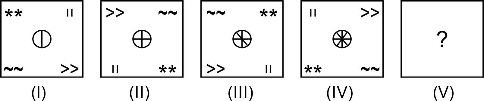 In the following que stion, select the figure which can be placed at the sign of que stion mark (?) from the given alte rnatives.