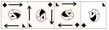 Step 1: The diamond shape and triangle shape moves in the clockwise direction.