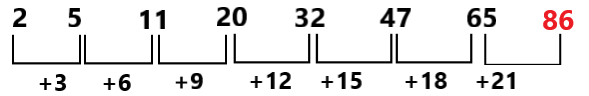 Given: 2, 5, 11, 20, 32, 47, 65, ?