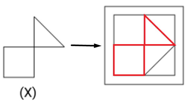 Select the option figure in which the given figure (X) is embedded as its part (rotation is NOT allowed).