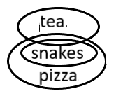 (c) Some pizzas are neither tea nor snakes.