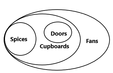 (Logic: In the Venn diagram the cupboards are the subset of fan and spices are subset of cupboard the the all spices are subset of fan so All spices are fan is concluded.)
