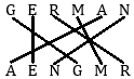 Given: MODERN : RONMED : : GERMAN : AENGMR : : JUNIOR : ?