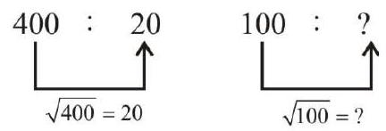 Select the option that is related to the third number in the same way as the second number is related to the first number. 400:20:: 100 : ?