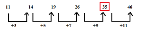 Logic: Difference of numbers is +3, +5, +7, +9, +11,....