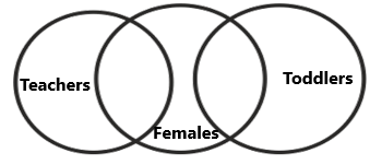 Select the Venn diagram that best represents the relationship betweenFemales, Toddlers and Teachers.