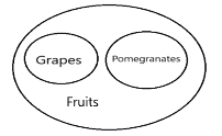 Select the Venn diagram that best represents the relationship between fruits, Pomegranates and Grapes.