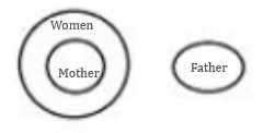 Select the Venn diagram that best represents the relationship between mother, father and women.