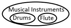 This diagram shows that both Drums and Flute are types of Musical Instruments but have no direct overlap with each other.