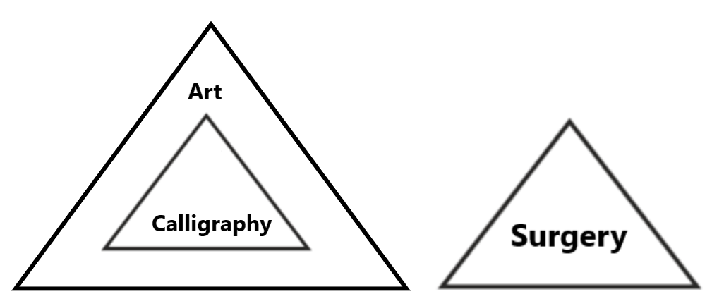Surgery is completely separate from Art and Calligraphy because it is a medical practice, not an artistic one.