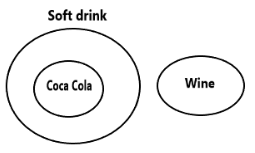Select the Venn diagram that best represents the relationship between the following classes.Coca Cola, Wine, Soft drink.