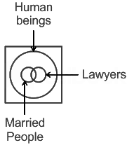 Select the Venn diagram that best represents the relationship between the following classes. Lawyers, Human Beings, Married People