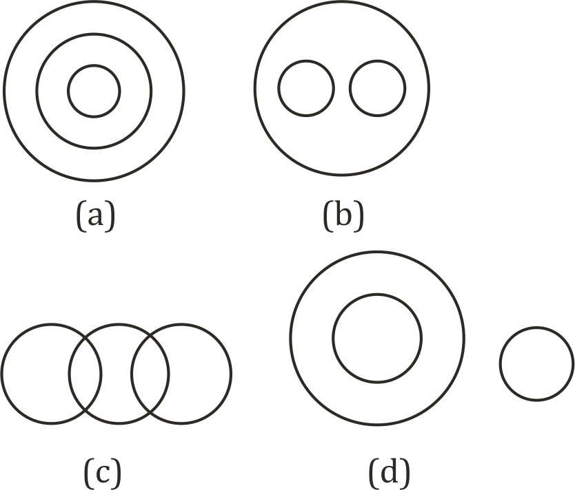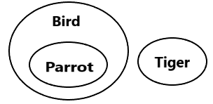 Select the Venn diagram that best represents the relationship between the following classes.Parrot, Bird, Tiger
