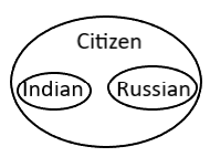 · One large circle labeled "Citizen," which encompasses two smaller, separate circles labeled "Indian" and "Russian."