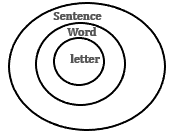 Select the Venn diagram that best represents the relationship between words, letters and sentence.