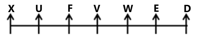 Seven friends, D, E, F, U, V, W and X, are sitting in a straight line, facing north. No one sits to the right of D. Only three people sit between D and F. Only two people sit between F and E. X sits third to the left of V. W sits to the immediate right of V. How many people sit between U and E?