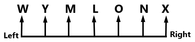 M sits to the left of O but to the right of Y.