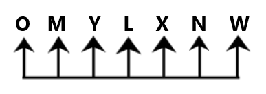 Seven people, L, M, N, O, W, X and Y, are sitting in a row, facing north (but notnecessarily in the same order).