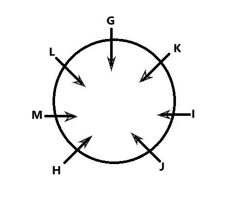 Seven people with the initials of their names G, H, I, J, K, L and M were sipping their tea, sitting around a circular table, facing the centre. They